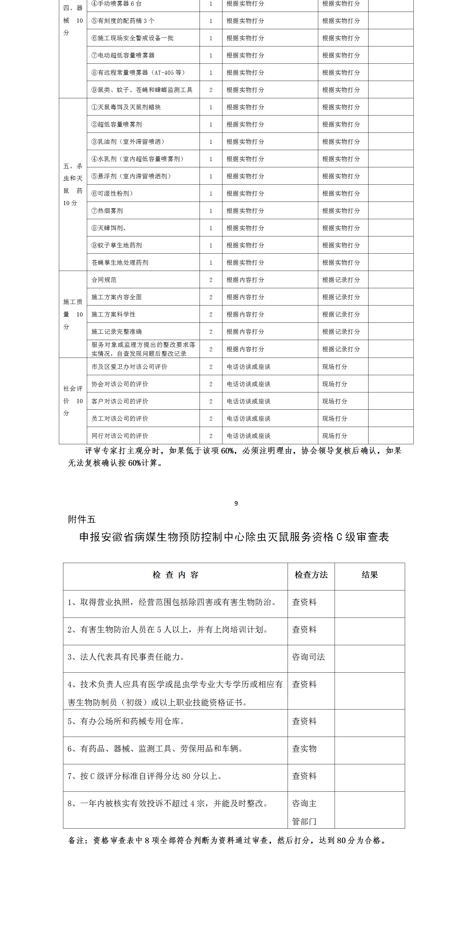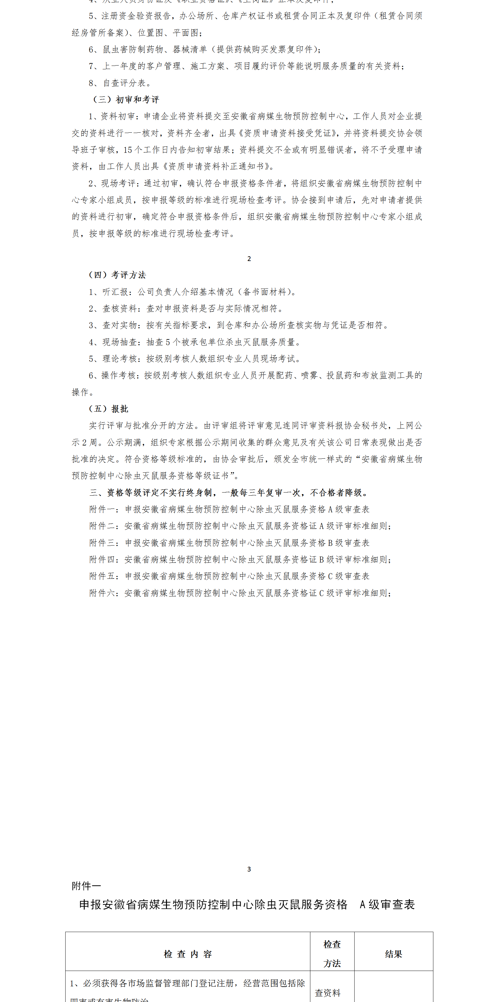 安徽省健卫病媒预防控制中心除虫灭鼠服务资格等级证评审标准和程序(2019年最新版本)