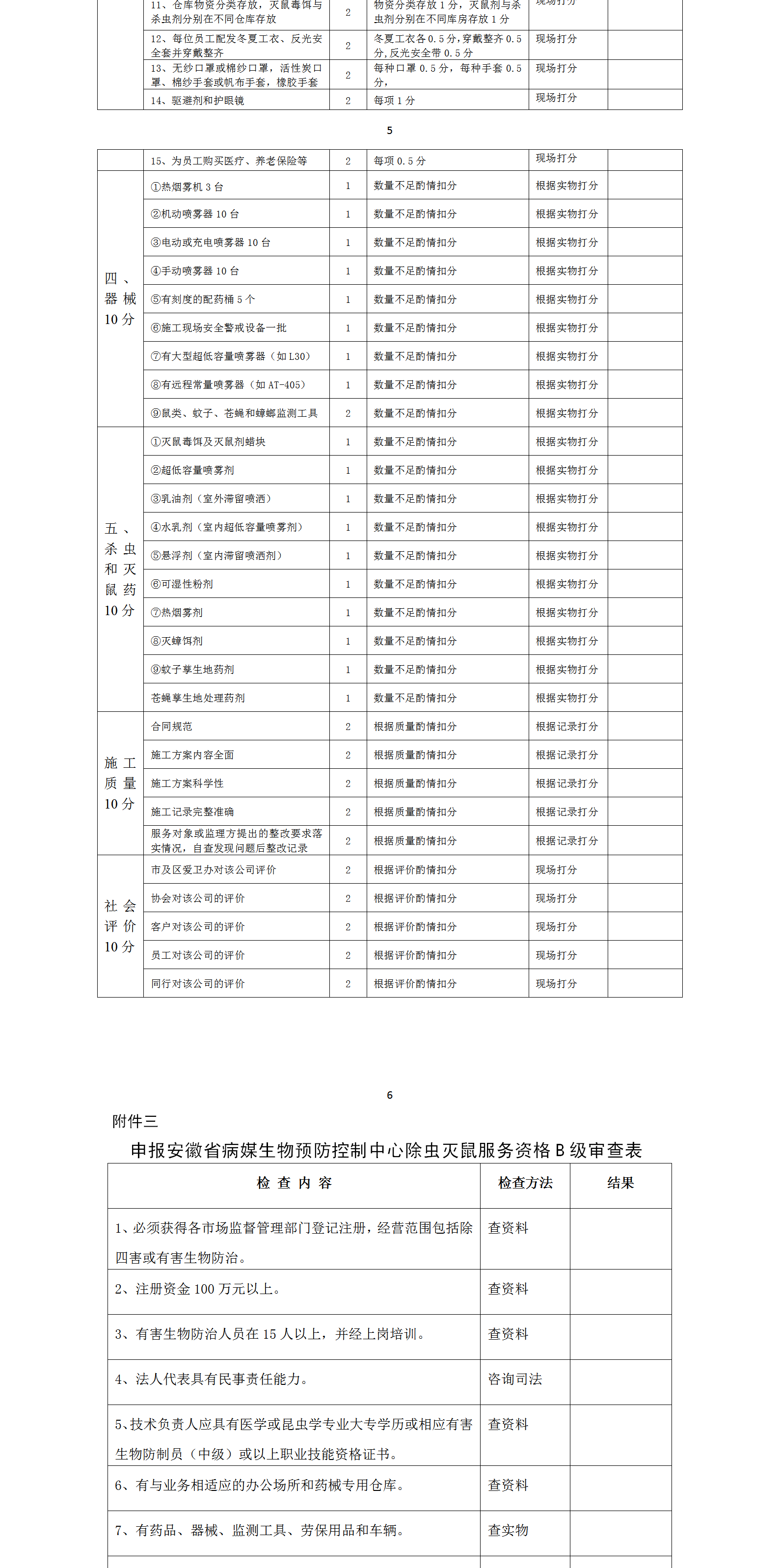 安徽省健卫病媒预防控制中心除虫灭鼠服务资格等级证评审标准和程序(2019年最新版本)